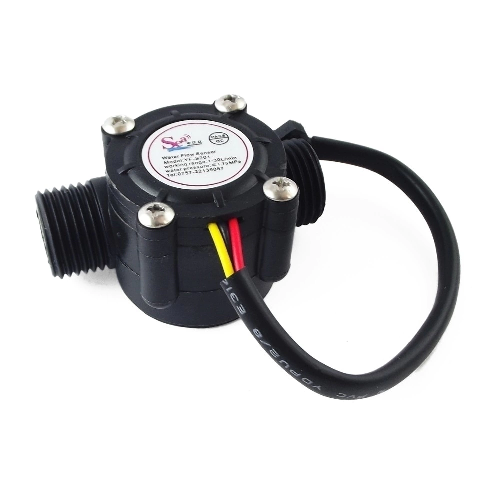 Es un sensor que se utiliza para medir el flujo de líquidos, principalmente en aplicaciones domésticas. Cuenta con un molinete fijado a un rotor que gira cuando el fluido fluye a través de la válvula y su velocidad será directamente proporcional a la velocidad del flujo. Además dispone de un sensor de efecto hall que proporcionará un pulso electrico por cada giro completo del rotor
